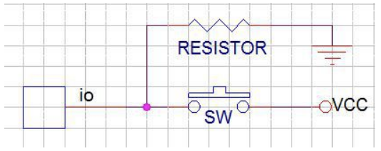 스위치가 눌리면 저항때문에 VCC가 io핀 쪽으으로도 흐르게 됨.