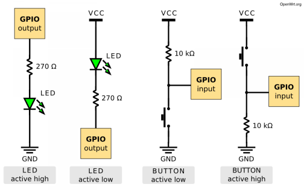 - Active High : GPIO 출력이 HIGH일 때 LED가 켜지는 것이 액티브 하이. LED is on when signal is high.