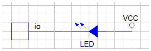 아래 그림과 같이 io핀의 출력이 low이면 LED에 빛이 들어올것임.